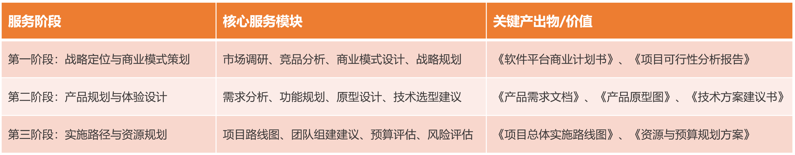 新产品/平台从0到1的完整策划:为有一个创新想法的客户,提供从市场分析、商业模式设计到产品原型和技术方案的全程策划,输出一整套可供直接投入开发的商业计划书和产品文档。