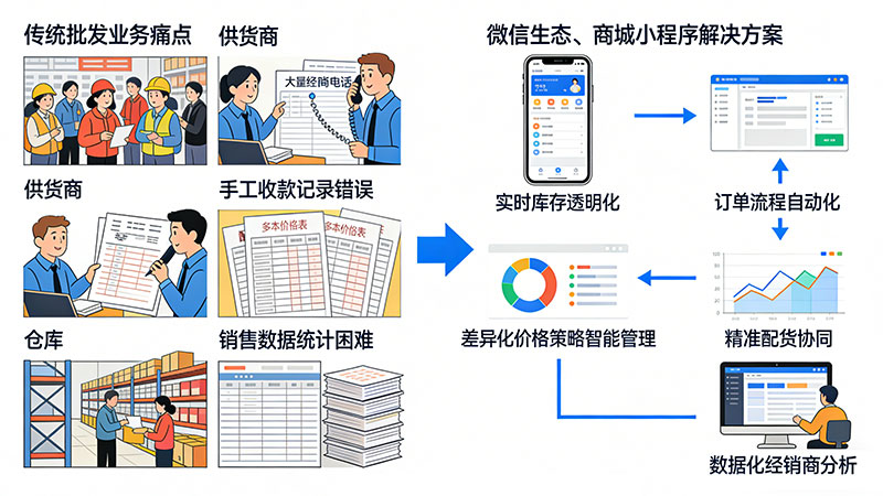 这些痛点不仅增加了运营成本,降低了客户满意度,更制约了批发商的市场竞争力和发展潜力。瑞博科技作为专注于企业数字化解决方案的服务商,深刻理解批发行业的业务逻辑与挑战,认为基于微信生态的商城小程序是破解上述难题的关键钥匙。