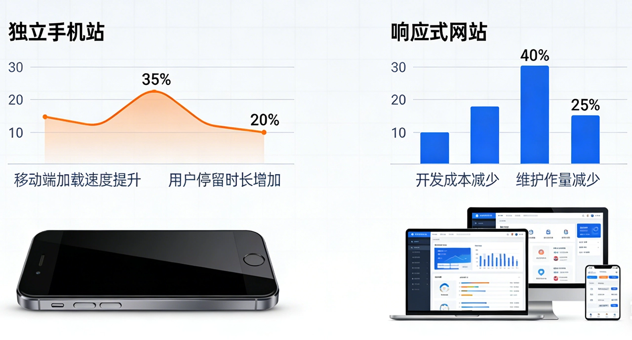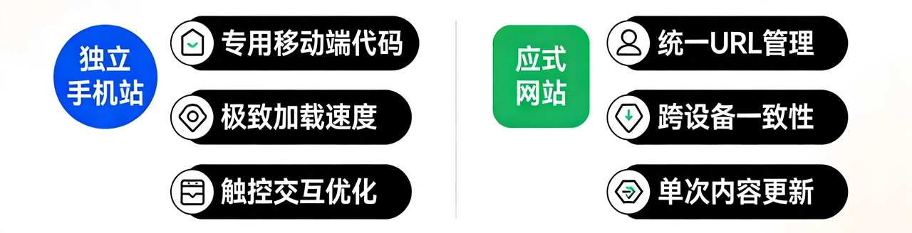 在移动互联网主导的时代,企业网站建设面临关键抉择:采用响应式适配还是独立手机站?本文基于行业数据与实践经验,深度剖析两种方案的优劣,并聚焦独立手机站如何通过APP级体验、专属界面设计及优化灵活性,成为提升用户留存与转化的利器。